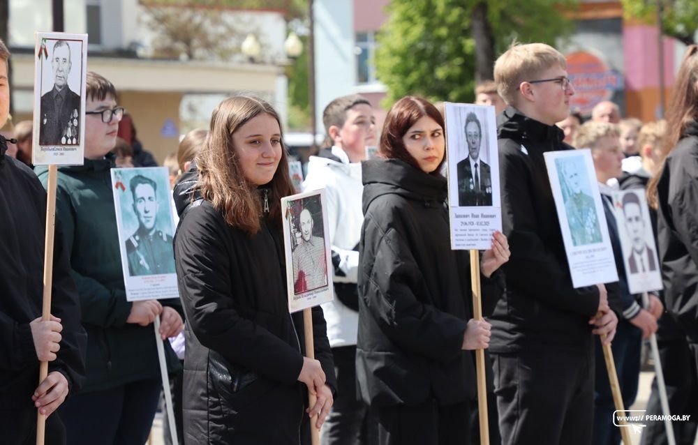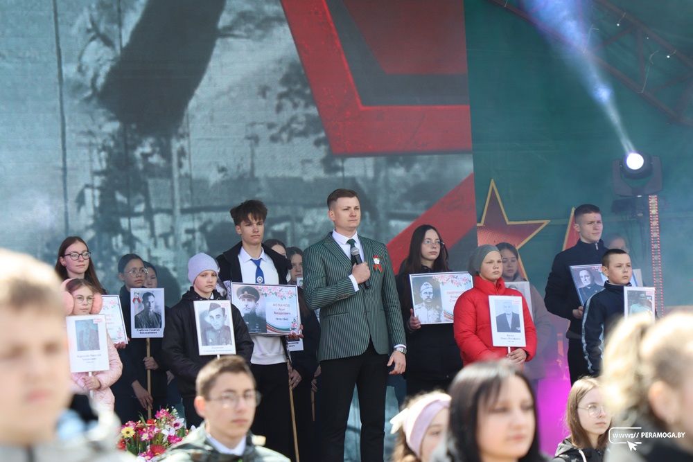 В рамках празднования Дня Победы по улице 17 Сентября состоялось традиционное праздничное шествие участников митинга и представителей трудовых коллективов. Участники прошли на Центральную площадь, где их ждала концертная программа.