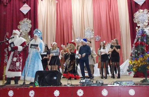 Выступление директора Игоря Китикова, прозвучавшее со сцены актового зала, создало в нем атмосферу ожидания праздника. Разнообразили ее песнями, музыкой и шутками участники новогоднего концерта. Мигала сверкающим разноцветьем праздничная ель, на сцене «вьюжило и порошило», как в настоящем зимнем лесу. Бесился ловкий «крысенок», в предвкушении своего звездного часа, семейный клан «дедки и бабки» суетился возле, не в меру, «раздобревшей» репки … А дотошный Дед Мороз устроил своей внучке Снегурочке настоящий допрос с пристрастием. В канве известного мультфильма про Волка и Зайца, адаптированного по случаю к новогоднему торжеству.