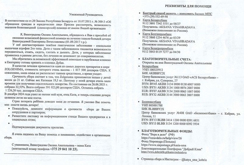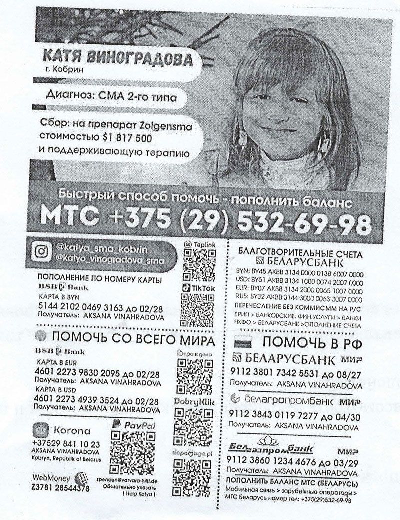 Нужна финансовая помощь Екатерине Виноградовой 8 июля 2025 | Просмотров: 27 Полная перепечатка текста и фотографий без письменного согласия главного редактора "Шлях перамогі" запрещена. Частичное цитирование разрешено при наличии гиперссылки | Условия использования материалов Continue Reading Далее Последствия жары. С тепловыми ударами с 3 июля в Беларуси к медикам обратились 10 детей и 18 взрослыхВозврат МНС: до 1 ноября предусмотрен тестовый режим для торговли по новым правилам считывания маркировки Добавить комментарий Отменить ответДля отправки комментария вам необходимо авторизоваться. НОВОСТИ РУБРИКИ Смотрите, кто будет на «прямой линии» в ближайшие дни, а кто проведёт приём граждан Руководство Вилейского РОВД 17 декабря выступит в трудовых коллективах и примет граждан по личным вопросам Последствия жары. С тепловыми ударами с 3 июля в Беларуси к медикам обратились 10 детей и 18 взрослых Общая задача – дать коррупции сдачи. Рассказываем о самых частых выявляемых нарушениях законодательства в Вилейском районе В «Сказке» – классно! Уборочная на контроле