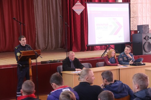 На «Открытый диалог» по заявленной теме в колледж были приглашены старший госавтоинспектор ОГАИ Вилейского РОВД Егор Кузмичев, заместитель председателя комиссии по делам несовершеннолетних Олеся Алексеева, заместитель начальника по кадровой работе РОЧС Сергей Крачковский, инспектор группы пропаганды и обучения РОЧС Надежда Литвинович, председатель районной организации ДОСААФ Василий Гулецкий.