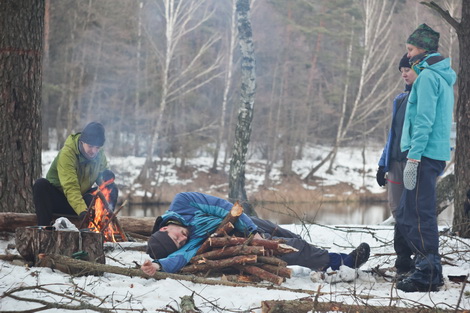Якая ж гэта асалода – прагуляцца па зімовым лесе! Лес яшчэ спіць пад белай коўдрай, але пры першай жа магчымасці ён гатовы абудзіцца. Адчуваецца, што ў лесе свяжэй і крыху халадней чым у горадзе. Чалавечыя сляды амаль не сустракаюца. Затое, то тут, то там відаць сляды жывёл, жыхароў ляснога царства: зайца, казулі, лася. Зіма са сваім снежным покрывам дазваляе зразумець, наколькі багатае і насычанае лясное жыццё. Пад нагамі шарпак, які прыходзілася прабіваць, прыкладваючы намаганні. Ад гэтага мы атрымлівалі сапраўднае задавальненне, усведамляючы, што лес зараз наш, і ў бліжэйшым мінулым тут амаль ніхто і не хадзіў.