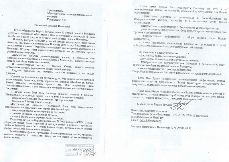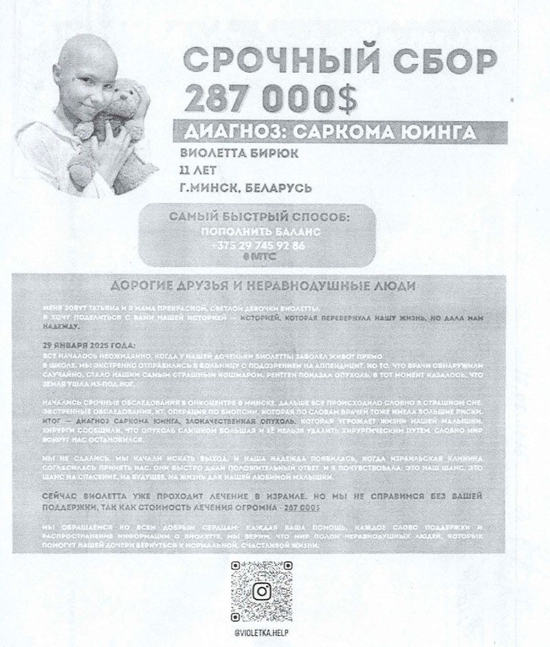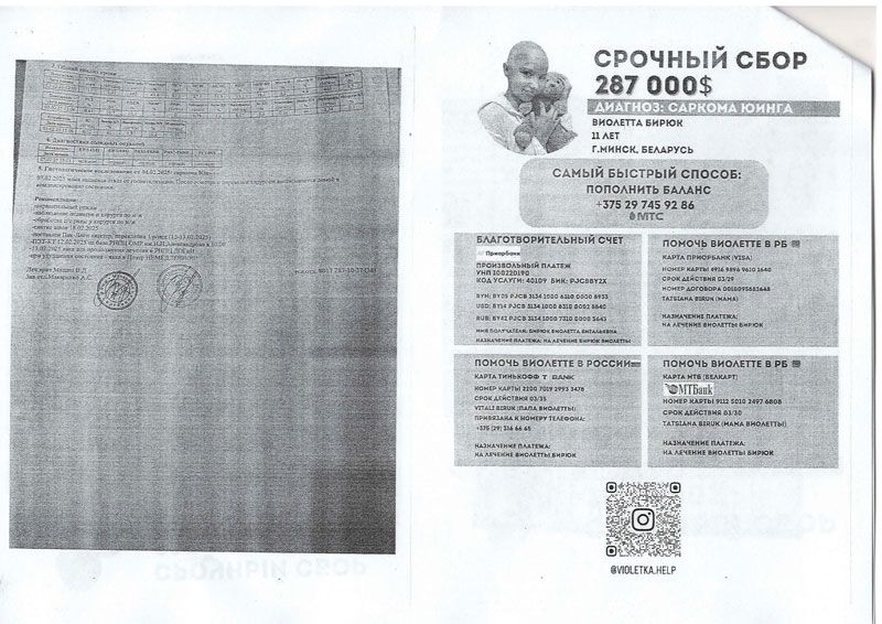 Бирюк Виолетта нуждается в сборе средств на лечение. Поможем 11-летней девочке!