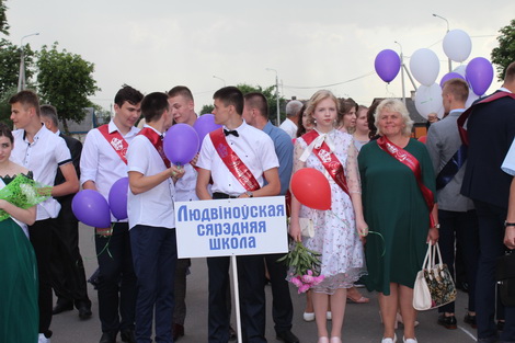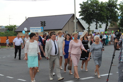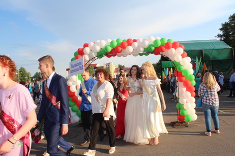 В Вилейке торжественно прошел районный выпускной вечер. По традиции, его прологом стало шествие колонны выпускников учебных заведений района под звуки духового оркестра