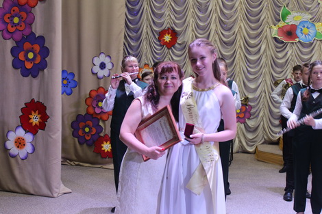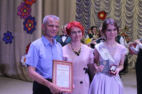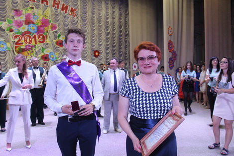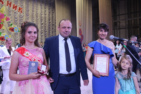 Александр Чеславович поблагодарил педагогов за преданность своему благородному призванию, родителей ребят – за их поддержку и понимание. А затем началась церемония награждения лучших выпускников этого года, получивших аттестаты об общем среднем образовании особого образца с награждением медалью, а также вручение благодарственных писем их родителям за достойное воспитание детей, которое вручили почетные гости праздника: председатель Вилейского районного Совета депутатов Елена Чеботарь, депутат Палаты представителей Наталия Жибуль и начальник управления по образованию, спорту и туризму Александр Пуцейко.