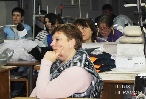 Местом встречи стал швейный цех районного комбината бытового обслуживания, а главной её темой – ситуация в экономике района. Марина Возняк рассказала об основных показателях развития за минувший период года и привела цифры, характеризующие экономическое развитие района по отраслям. Говорила Марина Возняк о темпах роста за минувший период года, о деятельности ведущих предприятий района и объёмах производимой ими продукции, экспорте товаров и услуг, уровне средней заработной платы в районе, занятости населения в экономике района и имеющихся вакансиях в районном отделе занятости.
