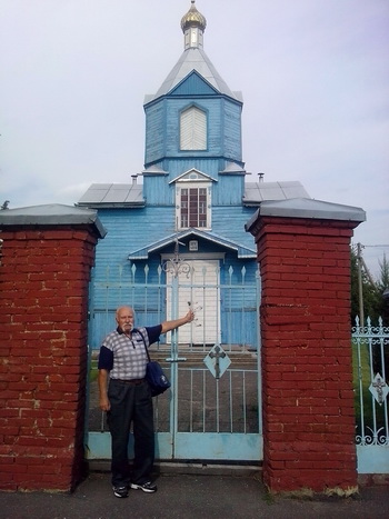 Александр Федорович Погорелов у церкви в Вязыне. 2018 год