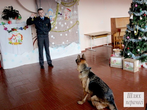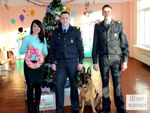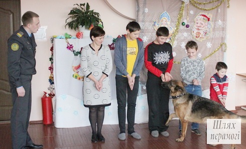 Вилейский РК ОО «БРСМ» вместе с сотрудниками Вилейского отдела Департамента охраны МВД Республики Беларусь — милиционером-кинологом группы задержания Русланом Соловьевым, милиционером-водителем группы задержания Александром Салашиным и символом наступившего 2018-го года — служебно-розыскной собакой Ирмой — посетили ГУО «Вилейский районный социально-педагогический центр».