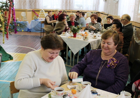 Удобно расположившись за столиками вокруг ёлки, за чашкой ароматного чая гости общались, делились воспоминаниями, поздравляли друг друга с праздниками, говорили самые тёплые и искренние слова и пожелания.