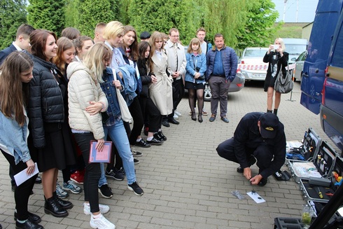 Сотрудник криминалистического отдела областного управления продемонстрировал учащимся возможности мобильной криминалистической лаборатории Следственного комитета, специальных средств, современного технического оснащения.