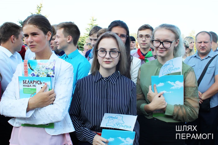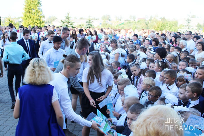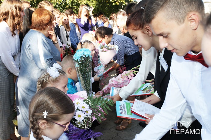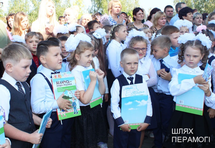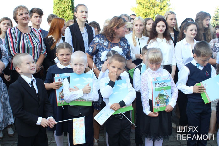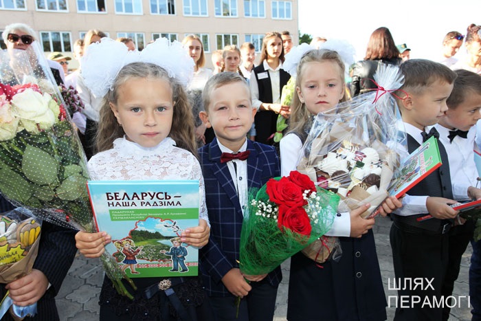 Темой первого урока для всех школьников послужила строка из стихотворения Янки Купалы «Маладая Беларусь» – «Занімай, Беларусь маладая мая,свой пачэсны пасад між народамi!».