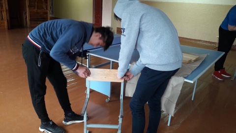 15 апреля вместе с центром занятости в школе была создана команда из 20 человек, а также были организованы работы по ремонту мебели. В связи с эпидемиологической ситуацией процесс был организован таким образом, чтобы у учеников была возможность работать в разных комнатах, естественно, под контролем учителей.
