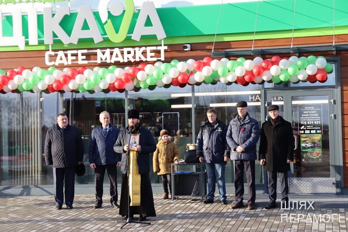 На открытии автозаправки в Сосенке по традиции перерезали красную ленту и вручили символический ключ руководству станции. Затем благочинный Ильянского округа отец Виктор освятил новый объект и поздравил всех присутствующих с Рождеством.