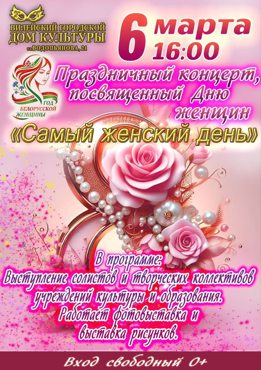 6 марта в Вилейском городском Доме культуры состоится праздничный концерт «Самый женский день», посвященный Дню женщин.