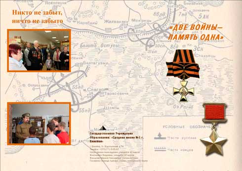 Свою исследовательскую работу “Две войны – память одна” учащиеся СШ №1 Даниил Каган
