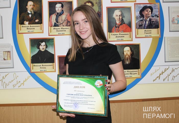 2 ноября на торжественной церемонии закрытия в Могилеве были объявлены победители олимпиады. Среди них – представительница команды Минской области – учащаяся 11 класса ГУО «Вилейская гимназия №1 «Логос» Алина Горелик, удостоенная диплома III степени. Уже несколько лет она участвует в олимпиадах по русскому языку и литературе, становилась победителем II и III этапов республиканской олимпиады. Учителя гимназии, которые помогали Алине готовиться к олимпиаде Союзного государства – Татьяна Михайловна Дубовик и Светлана Анатольевна Згерская – говорят о своей ученице, что она обладает глубокими знаниями, большой эрудицией и творческими способностями, а также умеет упорно трудиться и побеждать. Что и подтвердила Алина в очередной раз.
