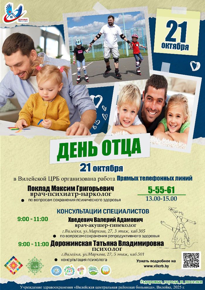 В Беларуси в рамках Недели родительской любви 21 октября отмечается День отца. В этот день Вилейская ЦРБ организует работу «прямых телефонных линий».
