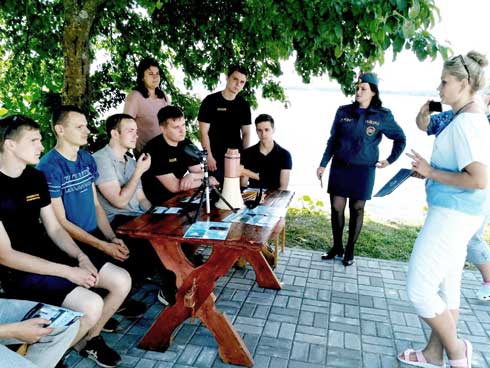 О безопасности на воде ребятам напомнили начальник спасательной станции Егор Ровдо, медсестра Елена Гракович, матрос-спасатель Елизавета Гракович, старший моторист-рулевой Виктор Слуцкий, водолаз 1-го класса Сергей Деруго, водолаз 2-го класса Сергей Савчиц. Основные причины гибели на воде – нарушение правил поведения, нахождение в состоянии алкогольного опьянения, плавание в запрещённых местах, неумение плавать, недосмотр родителей и взрослых за детьми, приступы болезни и другие. Привели сотрудники станции и данные статистики о несчастных случаях на водоёмах Беларуси, в очередной раз назвав места, разрешённые для купания в нашем районе.