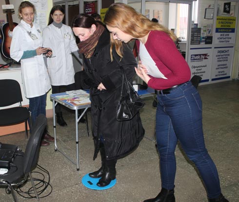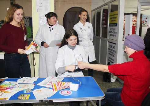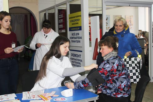 В минувший понедельник на втором этаже магазина «Вилия» интерактивную площадку организовали Вилейская центральная районная больница и районный центр гигиены и эпидемиологии при содействии районной организации Белорусского Общества Красного Креста. Транслировались видеоролики о профилактике болезней системы кровообращения, здоровом питании, пользе физической активности. Все желающие могли измерить давление и вес, получить консультацию специалиста. Распространялась различная печатная продукция с информацией о профилактике бронхолёгочных заболеваний, сахарного диабета, инсультов и инфарктов. Провожая год уходящий и встречая новый, важно остаться в добром здравии – вот основной посыл специалистов.