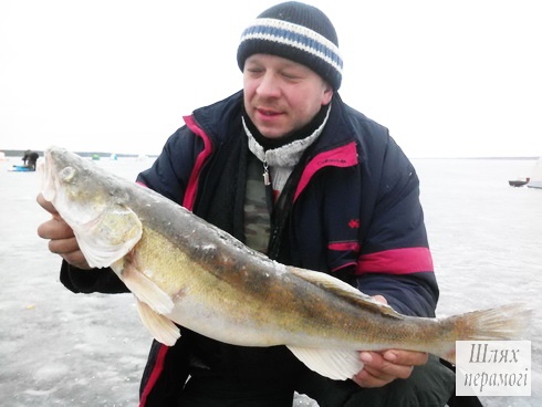 К слову, вчера этот же рыбак поймал два судака. Вблизи деревни Редьковичи на лёд он приехал к ночи. Долго сидел в ожидании леща, но случайно попались два судака. Самого большого, весом в 2,9 кг, он поймал за хвост. Борьба длилась около часа.