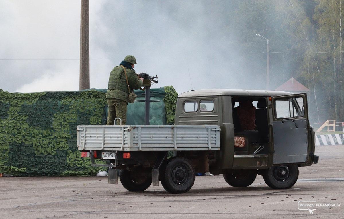 Стоит отметить, что в лесном массиве вблизи Вилейки особое внимание уделено организации обороны населенного пункта и ведению засадных действий, где подразделения территориальных войск несли дежурство на контрольно-пропускном пункте совместно с правоохранителями.
